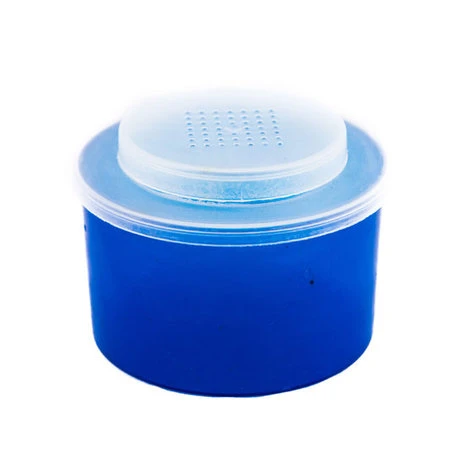 Deze madendoos is vervaardigd uit stevig plastic, met geperforeerd en goed sluitend deksel.