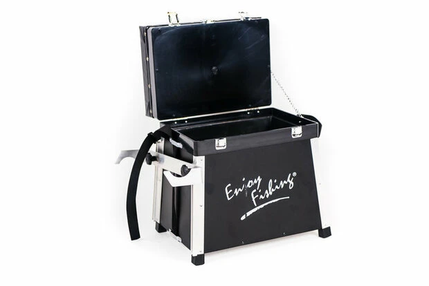 De bovenbouw is vervaardigd uit hout, de onderbak uit aluminium, voorzien van 2 compartimenten, 2 schuiven en handige draagriem.